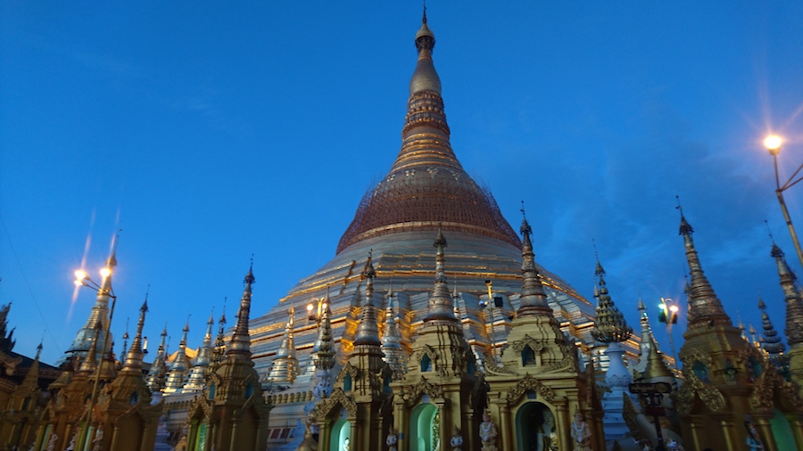 The plan was to meet at 4:00 am at the school. 11 of us met and duly cycled off at a nice easy pace. Although there are a few hills in Yangon they are pretty tame and it’s mostly flat so it wasn’t very strenuous. First we headed down to the Shwedagon which is beautifully lit up at night. There were hardly any cars around which was nice and the breeze from cycling made for a reasonable temperature. The rain is really slowing down now and has gone from everyday to once every couple of days. That doesn’t mean it isn’t hot though because it really is. Definitely reaches the 30’s most days, (30 degrees Celsius is 86 degrees Fahrenheit). Looking at the temperature back home in London and the other places our family live makes you really realise that you live in a hot climate.