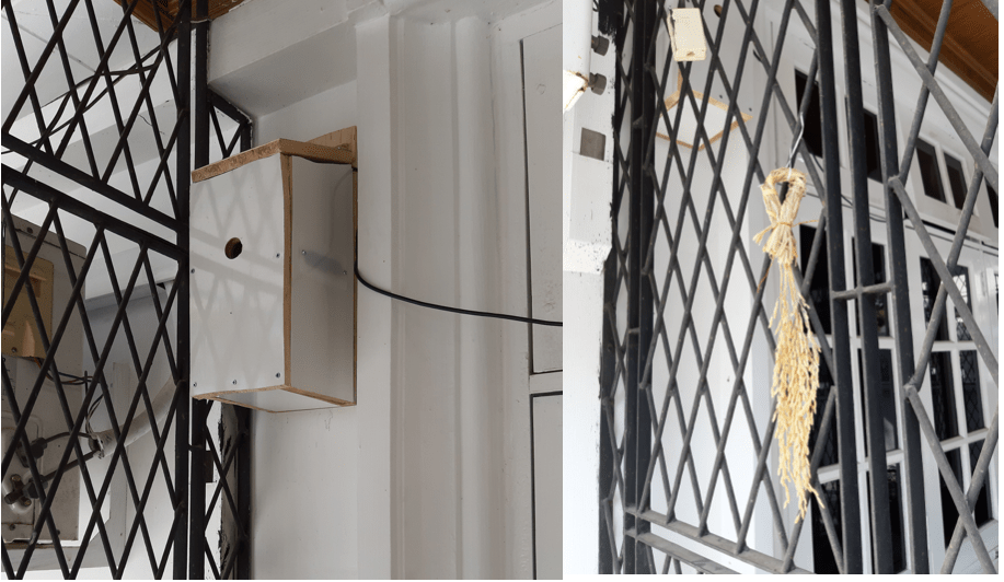 I have been recently trying to attract birds into our garden.  For those of you not on facebook I should mention that I have also recently built one of my patented bird boxes complete with a camera.  This one I call the Birdmaster 1,000 ‘Casa blanca’ as it’s made out of terrible chipboard with one surface already coated with a white veneer.    At first I cut open a coconut (don’t try it without some kind of vice or clamp) and hung it up using the standard coat hanger method.  Living in a country where coconuts grow I assumed the birds would be fairly used to this kind of food source but it remained untouched.  I had seen that sparrows are fed with ears of corn hanging down in clumps from trees but until recently had yet to find where I could buy these ears of corn.  Last weekend I discovered a whole load of these hanging up on a tree that we pass on our way back from our Sunday morning dog walk.  I attempted to ask in Burmese where I could buy some of these.  They didn’t speak back to me in Burmese but must have understood as a man produced a sack of them and promptly fished out a massive bunch for me.  I then asked for just a few ears (around 5) as I wanted to test it first.  He untied a few of them for me but when I asked him how much he wanted, he refused to accept any money.  The test has been extremely successful in that I have attracted the birds to the food source which is near my bird box but unsuccessful in that I still have no takers inside the bird box.