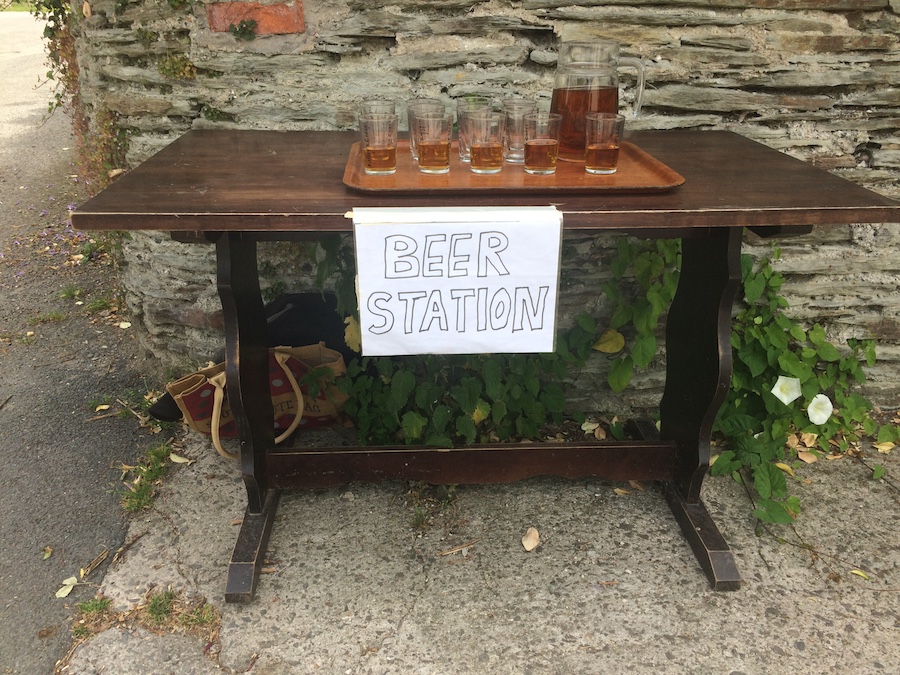 The other fun thing we did in Devon the day before leaving was our annual task of putting on a beer station for the North Devon Marathon. A few years ago we were cheering on the runners outside the local pub, beer in hand, when a passing runner suggested that a beer might be good right about now. This gave Lindsey the idea that putting on a beer station might be fun. The following year we did just that much to the amusement of the landlord and onlookers who though we were crazy and would get no takers. To everyone’s surprise the beer station was a roaring success. That year’s winning man stopped for a beer. In subsequent years the winning man and women have almost always stopped for a beer as do many other runners. This year the winning man did not stop for a beer disappointingly although the winning woman did. I should say that this is one of the hardest marathons going as the second half is spent going along the North Devon Coastal path which is a series of sheer climbs and descents. The pub is just after mile 18 and is followed by one of the cruellest hills on the entire course. Some feel that a beer is good preparation. There’s a lady at the top of the hill who gives out sausage rolls so at least there’s an incentive at both ends!