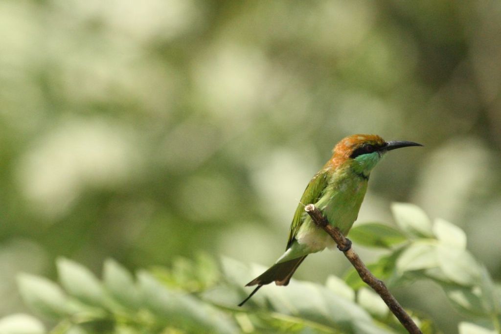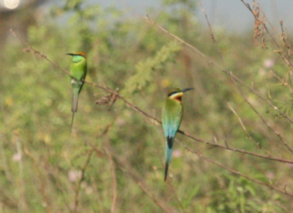 I can hardly describe my joy at discovering that I now live in a country that has Bee-eaters. They are so wonderfully colourful and beautiful to watch in flight. The Little Green Bee-eater is a common resident in Yangon. We regularly see them sitting on a cable that stretches across a bit of Inya Lake at the South East corner or on the telephone lines at the racetrack. I have even seen one from our balcony on a neighbour’s roof sitting on a TV aerial. The below photo I took on a birding trip which has both the Little Green and the Blue-tailed versions so you can see the difference.