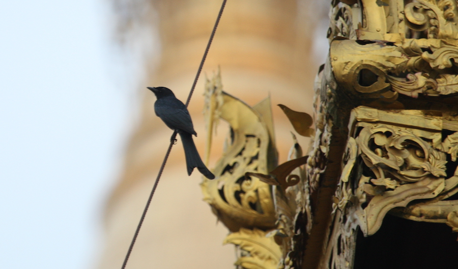 Along with the Tree Sparrow, this is the most common bird of Yangon. It is also the noisiest! Whatever you are doing in Yangon you can hear crows in the background as I can right now as I write this. Taken on it’s own it is actually quite a pretty bird with a greyish neck. They are annoying but I know I’d miss them if they disappeared. This shot taken at the Shwedagon Pagoda.
