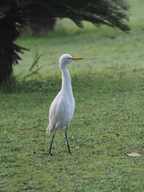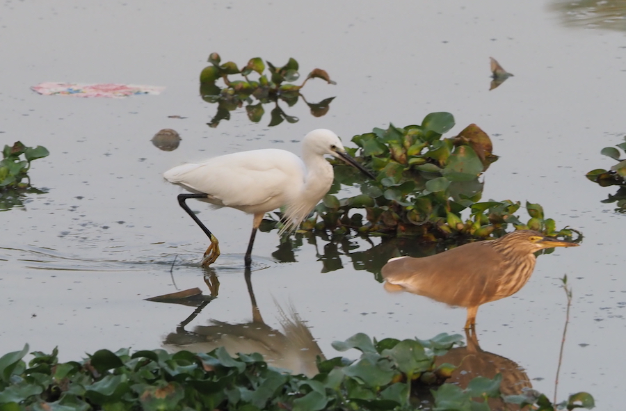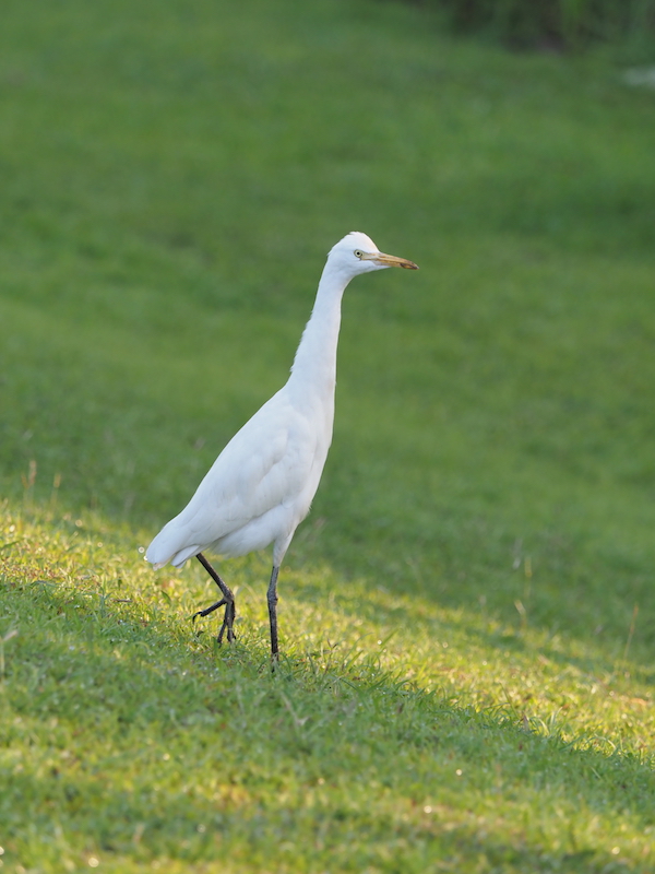 Well it’s an egret and it’s the most common one you’ll see in Yangon. It’s the one you see in photos on the backs of water buffalo but we don’t really have those in Yangon. It’s similar in size to the little egret but its beak is yellow and its legs and feet are a dark grey colour. The beak is also a bit stubby as is the whole bird unlike the little egret whose features are sharper in every way.