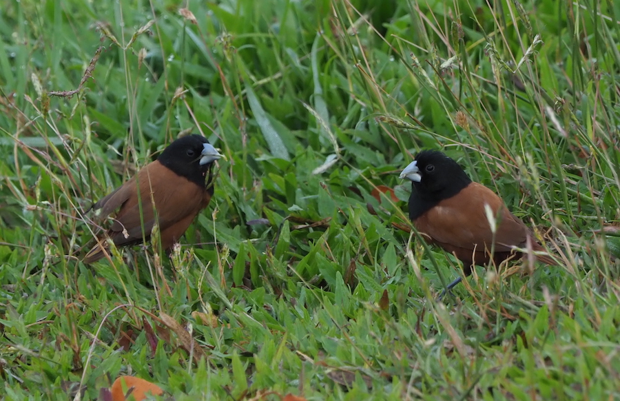I had been in Yangon for 1 and a half years before I spotted these two nonchalantly eating grass seed by the side of the path on our regular lake walk. Therefore I think they must be rarer in Yangon than their scaly breasted cousin. Very handsome though.