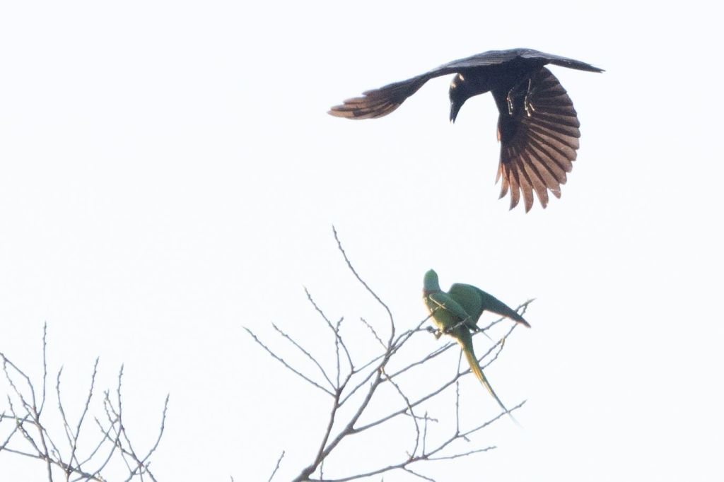 The photo below was taken from the balcony of our house. For several days I had heard the parakeets but just couldn’t see them. Eventually I got lucky…