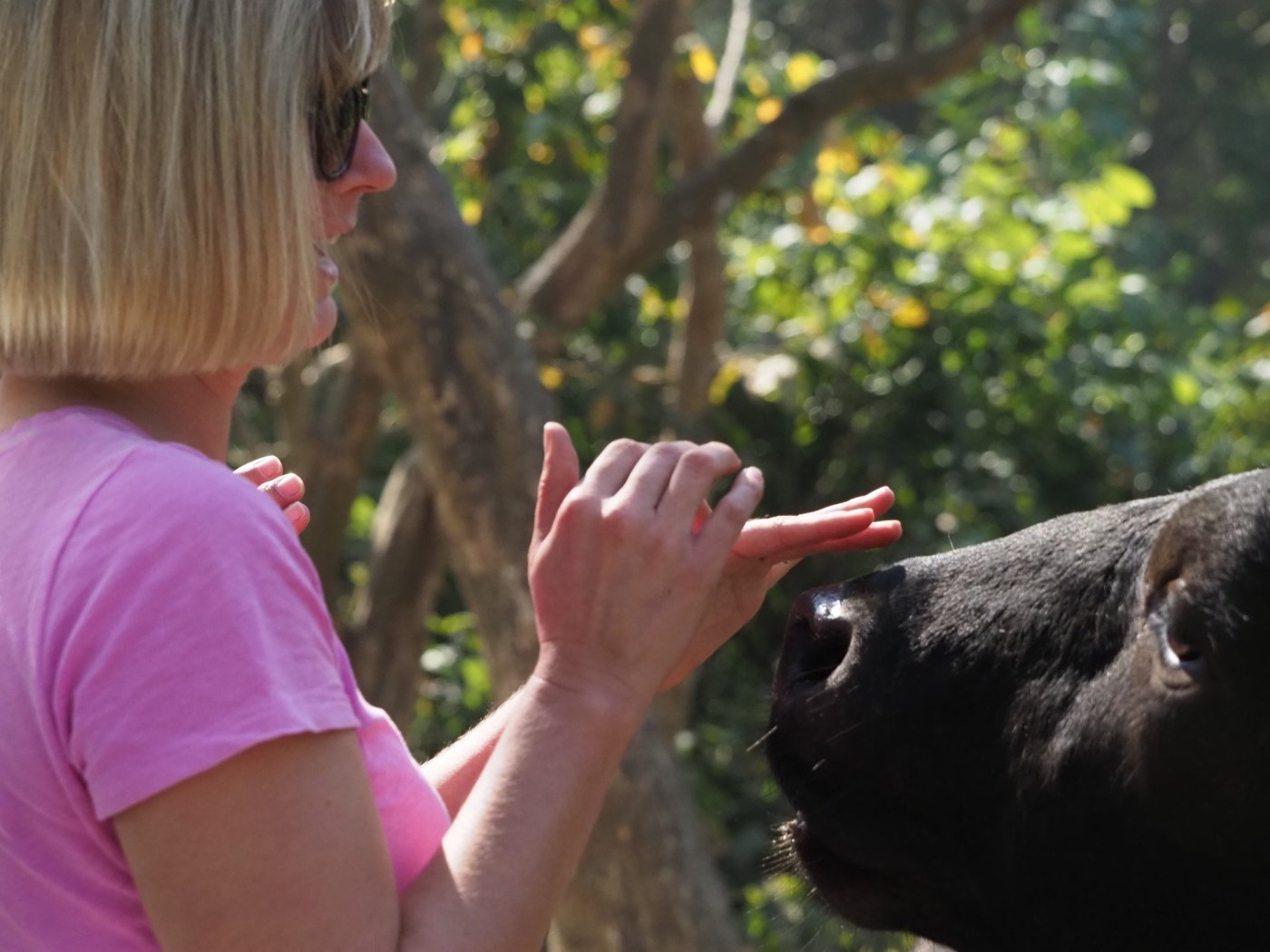 There were also herds of deer and buffalo in the park.  And, you guessed it, people were selling food you could feed them as well!  In general, these guys were much more polite, although they were not afraid of getting right up to the car, or swarming you if you dared to step out!  The buffalo were the sweetest, allowing you to stroke them as long as they got a nibble of corn now and then.  At the exit we ran into a few elephants you could feed as well-this was a bit sad as they were chained down and I think used for rides in the park.  Of course we stopped to feed them as well.
