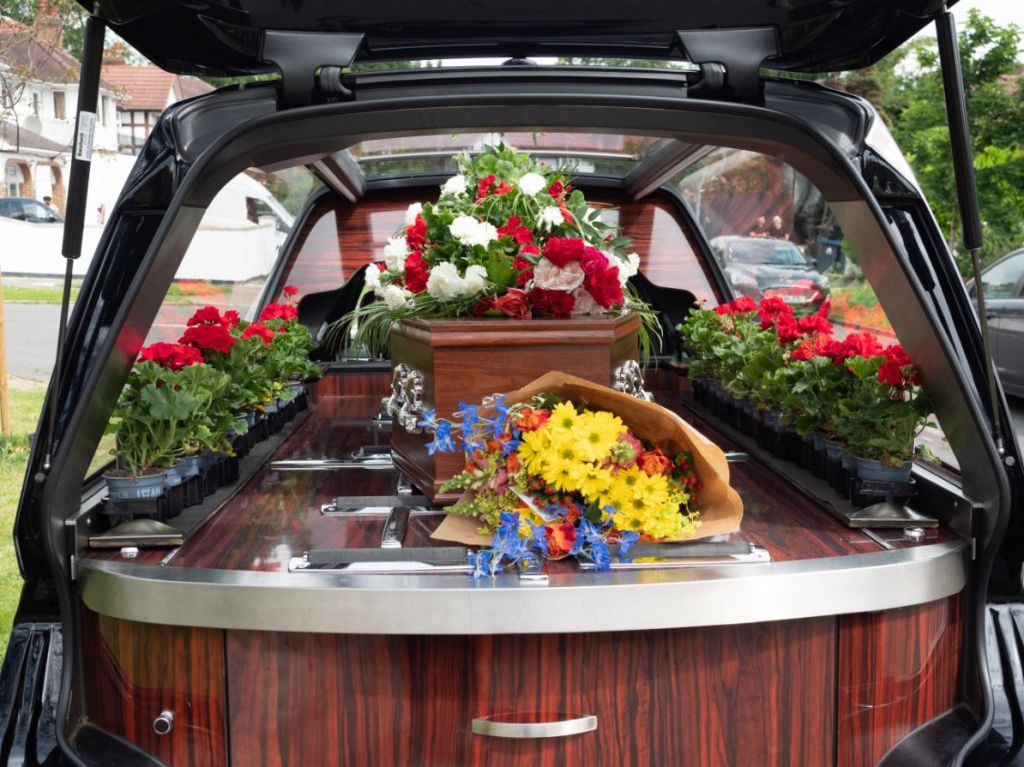 For me there were two highlights from the crematorium service.  The first were the flowers which was an idea I originally came up with but that was then perfected by a tip from the funeral service.  My Dad loved geraniums and every year would have as many as he could find planted around his koi pond.  My idea was to have geraniums around his coffin in the hearse and that afterwards we could then plant them around the pond as he always liked.  I mentioned this to the funeral directors who then said that they knew of a florist in the area who had once created a floral tribute using geraniums.  They gave me the details and I called them to arrange it.  In the end, the florist did a fantastic job blending deep red geraniums with his other favourite flower, white carnations.  The geraniums were actually in their soil so we were able to take the floral tribute apart afterwards and replant all the flowers making separate displays from the carnations – 100% recycling!  The other highlight was the reading of the obituary which I wrote but Lindsey read brilliantly.