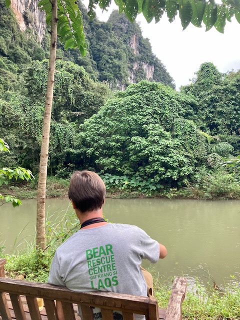 We enjoyed a nice evening walking around the lodge and sitting by the river, watching people tubing past. It’s very funny to see the groups of Asian tourists floating down in their tshirts and shorts, followed by groups of Russian tourists in their sting bikinis. Good think none of those groups saw the water monitor lizard Gav and I spied swimming upstream!