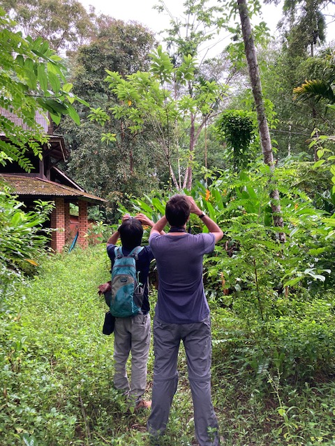 As soon as darkness fell, it began to rain. And rain and rain and rain all night long. I kept waking up, worried that birding the next day was not going to work out. When we woke up it was STILL raining but by about 6:30am it had all but stopped and we met our guide. Who worryingly told us that his English would be a bit rusty as we were the first guests he had had since Feb 2020 and he had been driving a food truck instead. He did turn out to be very good (especially with bird sounds) and we had a nice morning wandering around our lodge and the village spotting all kinds of things.