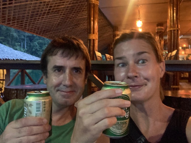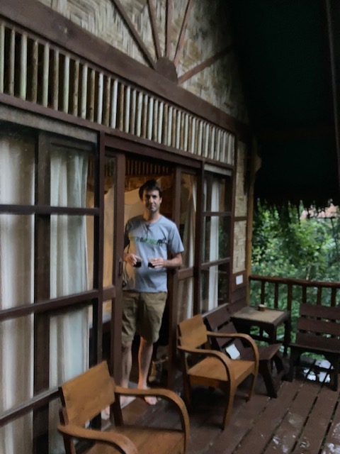 Accommodation can be a little hit or miss at the moment, given that so many places have not really seen tourists since February 2020. Our lodge had a 3 star rating which always gives me pause around here. 3 stars could very well signal that you are actually sleeping in someone’s living room and using the village drop toilet (Laos homestay ringing any bells?) but I am happy to report that our treehouse was basic but lovely and had some interesting visitors almost immediately.
