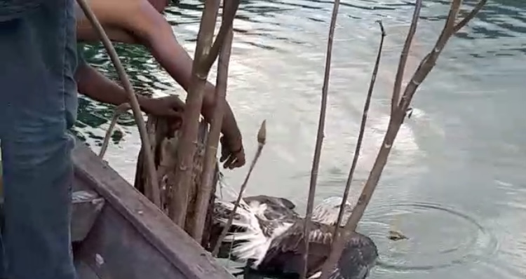 Luckily our guide was very calm and knew what to do. We got the boat up next to the bird (who kind of jumped over the stump into the water) and our guide put a life jacket on top of it, to protect himself from the bird’s claws.