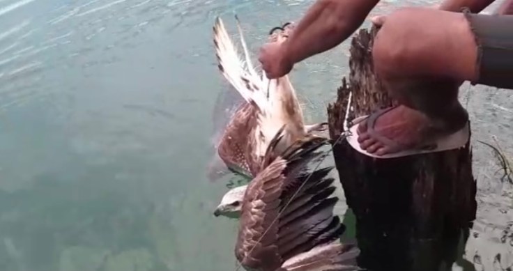 From there he grabbed the feet and managed to unhook the fishing lure that was in the foot of the eagle. Gav and I kept saying “cut it! cut it!” and he very patiently explained that he couldn’t just cut the fishing line, he had to remove the hook as well. Once he got the hook out, Gav told him to pull the bird out of the water and put him on the front of the boat so he could dry his wings and fly off.