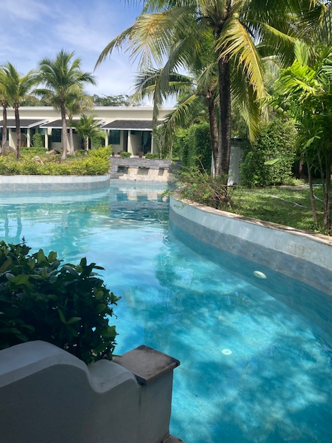 I am assuming that most of the people here got unlucky positive results on one of their mandatory tests when you come to Thailand under the Sandbox program or whatever it is called now. Therefor, these are all people who are on vacation and want to have some fun. For a few days there was a big group of Israeli guys who obviously were just carrying on the party from the beach to here. There are two German guys next to me who really wanted to be friends (one of them crawled in the bushes separating our rooms on the first night, poked out, scared the crap out of me and yelled “you’re NEW!”). I get it, but I am still having to work and also the idea that we are all actually ill and contagious does kind of gross me out so I don’t really want to fraternize. People are getting a little desperate for fun.