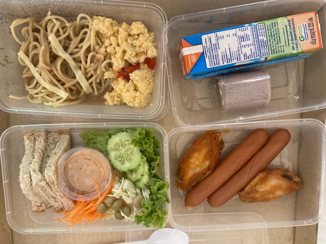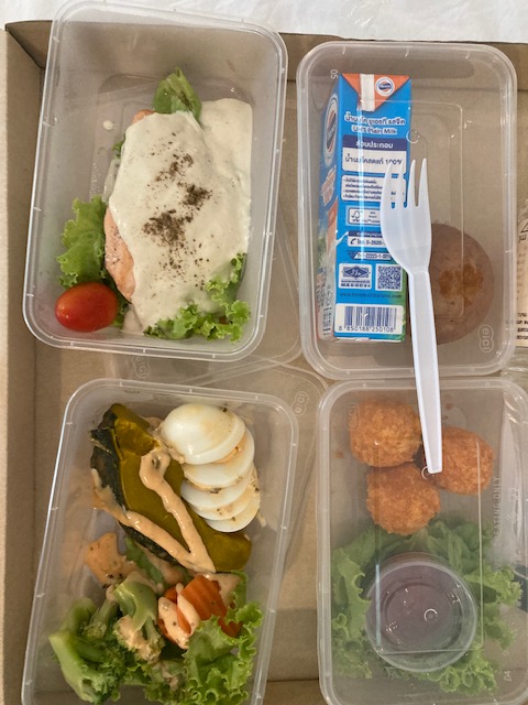 Yes, that IS a man getting in a kayak to paddle around the pool. Yes that IS a lady in a thong that does nothing all day but swim out to that “island” and then parade around and talk to everyone. Now, obviously this set up is just about as good as you can imagine if you have to quarantine for 10 days. I do not have a whole lot of complaints, except the food situation is extremely bizzare. Rather than choosing anything off of a menu or anything like that, food just shows up outside your door at set times. What are those times? I am so glad you asked. Breakfast is at 9:45, lunch at noon and dinner anywhere from 4:45-5:30. It is like some sort of forced intermittent fasting regime (now that I think about it, maybe this is tied to the weighing they did when they tested me?). And once you DO get the food, it is spectacularly random. Behold some of what I have received: