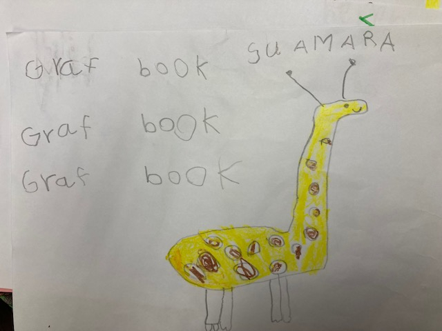 I finally figured out that this was a request for a jellyfish book (good thing the drawing was there) but I just could NOT find any storybooks about jellyfish. Children’s book publishers, there is a hole in your market! I ended up reading them all kids of facts about different kinds of jellyfish from non-fiction books and then a kid raised his hand and said “can this be over now please” so I think I did not quite hit the mark. Hopefully next week will be easier as I got this request.