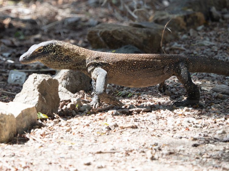 We then went traipsing around the light jungle area trying to find more. For a long time we didn’t see any but we did see quite a few birds most of which were new for me. The same evolutionary process that isolated the dragons also created a number of endemic bird species to that area and they weren’t too hard to spot. Among them were some great names that I’d never heard of before. Examples include the White-shouldered Triller, Rusty-breasted Whistler, Wallacean Drongo and my personal favourite – The Helmeted Friarbird! I also saw my first ever wild cockatoo.