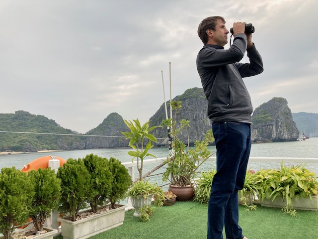 Because we were about to spend 3 days on a boat. Whoops. Way back in February of 2020 I booked a last-minuteish trip to Vietnam to go to Halong Bay in our April break. This was AFTER our trip to Beijing had been cancelled due to this new virus spreading around. I thought the best thing to do was to just book a vacation for someplace else because surely this would blow over? Anyway, I found a sweet little houseboat that only fit 2 people to cruise along the famous Halong Bay in northern Vietnam. I was sad that it seemed like we would never actually be able to go on that thing, so I was delighted when they had a few nights that we could book in late December. Guess why they had availability? It is legitimately COLD and foggy in Halong Bay in December! Great time to be on a boat. The scenery was amazing but we were freezing the entire time. Between us we only even had 1 pair of socks (mine, we were determined to travel light!) and those babies were the MVP of that trip. Well that and Gav’s new jumper that we thankfully purchased.