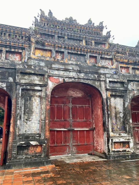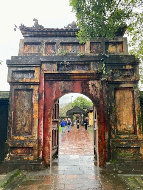 After Hanoi we took a quick flight to Hue, the Disneyland of Vietnam. It is a beautiful little place that did not get bombed during the American War (as we learned it is called in SE Asia) so still has streets and streets of preserved historical buildings. The problem is it is super touristy and all those beautiful buildings are full of absolute tat. It is kind of a must see though and very atmospheric. Spoiler alert, it rained while we were there. Also the hotel I picked had a leaky roof and Simon and Paula spent an uncomfortable night breathing in some stink.