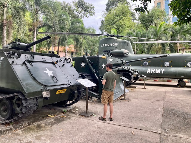 Our last stop of the break was to Ho Chi Minh City. Unlike Hanoi, HCMC is a huge, modern city but it is still teeming with history. There are lots of things to see that relate to Vietnam independence and various conflicts throughout its history. I think this was the first time I kind of started to get my head around the events, pressures and fears that lead to the American/Vietnam war. It’s interesting to view history from an entirely different perspective than ones you have been presented with in the past. We got to visit the palace where the North Vietnamese flew the flag of Vietnam when they rolled their tanks into the grounds and liberated Saigon-a real slice of the 1970s! There is also an excellent War museum that is difficult to take in but very helpful in understanding the Vietnamese perspective of its own history. On less somber notes, we stayed in an excellent historic hotel with a rooftop bar providing magnificent views (thanks again Si) and the country’s most expensive cocktails. We also did our best to visit some of the city’s delicious microbreweries. On the whole, I prefer the chaos and historical feel of Hanoi, but I am so glad I got to see HCMC as well. It was still pretty cloudy but not rainy by the way.