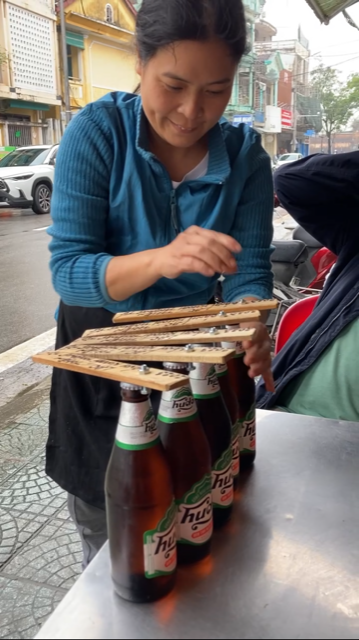 The main thing to do in Hue is to visit the ancient citadel and some famous tombs of emperors. All of these sights are amazingly beautiful and well preserved. But it was raining pretty consistently. I wasn’t too annoyed by the weather as we hadn’t seen overcast skies since the start of November, but I did feel pretty bad for Si and Paula who came all the way to Vietnam to have British weather, sorry guys! I really enjoyed Hue though, despite the ancient bits the rest of the city had a very liveable feel to it. It does seem to be on the trail of package tours, but it’s pretty easy to dodge the groups. Lots of Vietnamese people were also visiting and taking photos in traditional dress is a real highlight. See S&P photobombing the poor lady below! One restaurant entertained us by having a system to open 5 bottles of beer at once! Everyone got an opener to take home. The video is pretty impressive-the lady had skills!