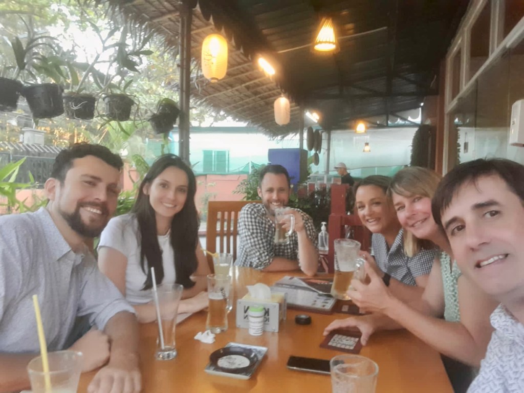 Last week we had a staff social on the building at school that overlooks the Shwedagon Pagoda. The heat was kind of ramping up, but I think we squeaked by on the last bearable night for dancing outside without passing out. It was a great night with a live band and Gav harassing everyone to get their photos taken while the light was still good. This fancy-ish evening replaced our usual Friday night beers with friends. In January we were delighted to welcome our friend Mike back to Yangon after nearly 2 years. He had some significant health issues that meant that he has been working remotely from New Zealand since we all left in April of 2021. But he has gotten a clean bill of health and we were so excited to have him actually return for in-person beer!