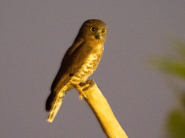 We then drove on to our destination which was this quirky place where all the rooms were built as if they were cabins on boats. The place looked very much as if Covid had not been too kind to it but instead of fixing the things that need fixing the place seemed hell bent on building new things which were all in varying degrees of readiness. There was a deck with a great view of the lake where the place was situated which was a lovely spot for having a beer and taking in the view (mainly of birds for me). That evening I was particularly proud of this shot of an owl which landed quite close to us for a few seconds. I knew the settings I had to change quickly in order to take a good enough photo to be able to later identify the bird which has the rather amusing name Brown Boobook. Annoyingly, I had seen it before in India though so NOT a lifer.