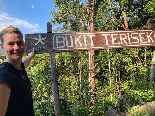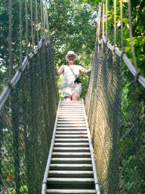 Our destination was Taman Negara National Park north of KL and we were staying at a resort actually in the park – Mutiara Resort. Once you get there you can book yourself in for a range of activities and we immediately got ourselves on the evening boat ride down the river and a bird tour the next morning. Before the evening excursion, we thought we’d take a little walk to get things going. There was this one destination which was less than 2 km called ‘something’ hill. The paths there are all man made raised walkways although in varying degrees of decay such that you really had to watch your step. What we hadn’t realised is that the ‘hill’ turned out to be basically a 750 m straight staircase with about a b’jillion steps (that’s a Lindsey amount btw). The only saving grace was seeing a few gibbons albeit briefly. Following that little walk being WAY more than we bargained for, the boat trip was very pleasant with the highlight being two or three river otters catching fish.
