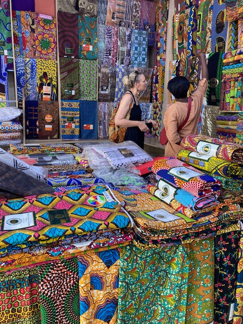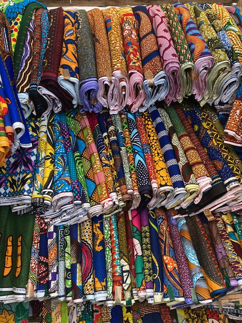A few weekends ago anther teacher took me to the giant market downtown to do some fabric shopping. This market-Makola Market-is supposed to be the biggest market in West Africa and I can believe it. As we were driving along it seemed like you could get anything here if you dig around enough. Everywhere you looked there were people selling shoes, bras, baskets, bags, avocados, microwaves, you name it. There must be some kind of organisation as we headed to a section that was mostly fabrics. It was insane! There are so many colours and patterns and it does take your eyes a little while to get used to it and start seeing some things that interest you.
