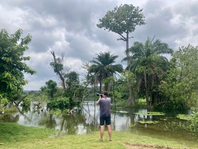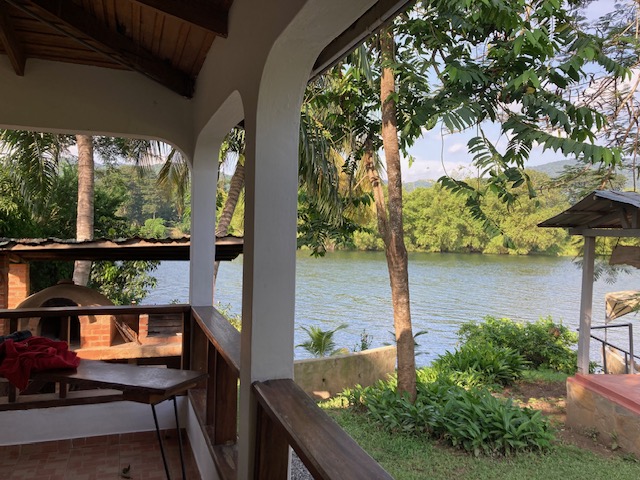 Anyway, it was an adventure and we are very glad to have our ridiculously enormous car as it handles the bumps pretty well. We arrived in Akosombo and were pleasantly surprised by how pretty it was. This is a little town in the southern Volta region. It’s right on a river and its location obviously make it very popular as a quick escape from Accra. There are lots of resorts and things in the area. The place we found was a sweet little enclave of 3 cottages on a property with access to the river for swimming and kayaking. The owners also have a bigger house there but they split their time between London and Accra so are not always there. They have 2 very friendly dogs that are always there though and we spent a lot of time loving on them much to Nell’s dismay. Gav had a blast birding all around the property and we had a very relaxing little break.