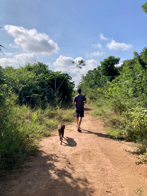 Most of our weekends are not quite that adventurous though. We are getting into a routine of things that we like to do when the week has whizzed past and we find ourselves with 2 days to relax. Very close to where we live there are a few parks that we have discovered. On Saturday mornings we take Nell for a walk in the Achimota Forest, home to the Accra Zoo. The first time we tried this we did not really know what we were doing, we just drove to a green patch on the map. There is really only 1 way in so we turned onto a very bumpy dirt road and were extremely surprised to find it very crowded. Cars were parked all along this road and people were headed into little clearings just off it. When we parked the car and got out we could hear lots of singing/chanting and posters pointing people to different “lots” where they could meet with different religious leaders. Is it alternative Saturday church? Not sure but it is very popular and a bit of a shock to the senses. (Strangely last Sunday I went there running with a friend and it was deserted! Not a person around. I guess everyone is at regular church on Sundays!). We walked on past all that and Gav got to birdwatch, Nell got to smell all kinds of new smells and we were really enjoying ourselves. All of a sudden, across the road in front of us, a warthog popped out from the bushes! He started at us for a minute and then crossed the road, followed by two of his friends. Gav and I had a “holy crap we live in Africa” moment, Nell didn’t even notice. Luckily Gav had his camera!