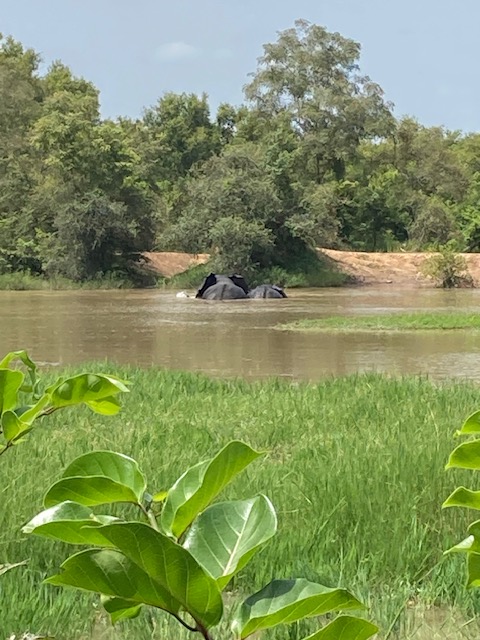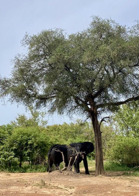 Look at the different colors of the elephants! The grey color that we normally see is actually dust they throw on themselves for sunscreen. When they come out of the water they are totally black! And in Mole the dirt is red so sometimes you will see them with a very red tinge. Amazing! The best encounters with the elephants were when we went on walking safaris. The rangers all know the elephants and their personalities so with some of them we could get very close to watch them.